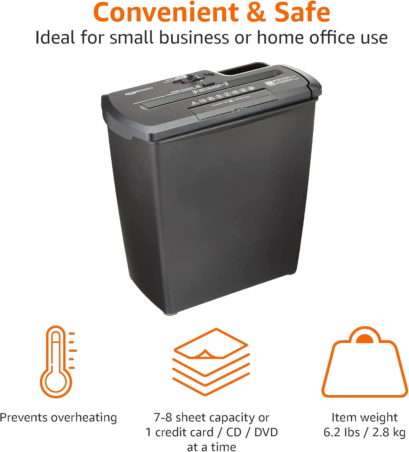 Знищувач документів смугового типу ємністю 7-8 аркушів паперу; знищує кредитні картки, CD та DVD (індивідуально)